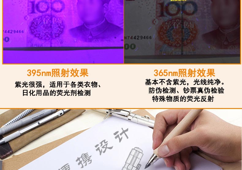 UV02是一款便攜式迷你筆帽式UV紫外線手電筒,使用兩節(jié)AAA電池。雙向抱夾及筒身滴水紋設(shè)計(jì),不僅方便攜帶也美觀大方。