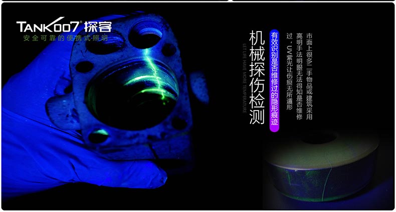 TANK007探客UVC31大功率可充電專業(yè)檢測紫外線手電筒:日本原裝進(jìn)口的日亞 UV LED,使用18650鋰電池,適合NDT檢測、痕跡檢驗(yàn)、工業(yè)探傷、檢漏等 ,看也適用于警察安防的驗(yàn)痕、血跡,作案...