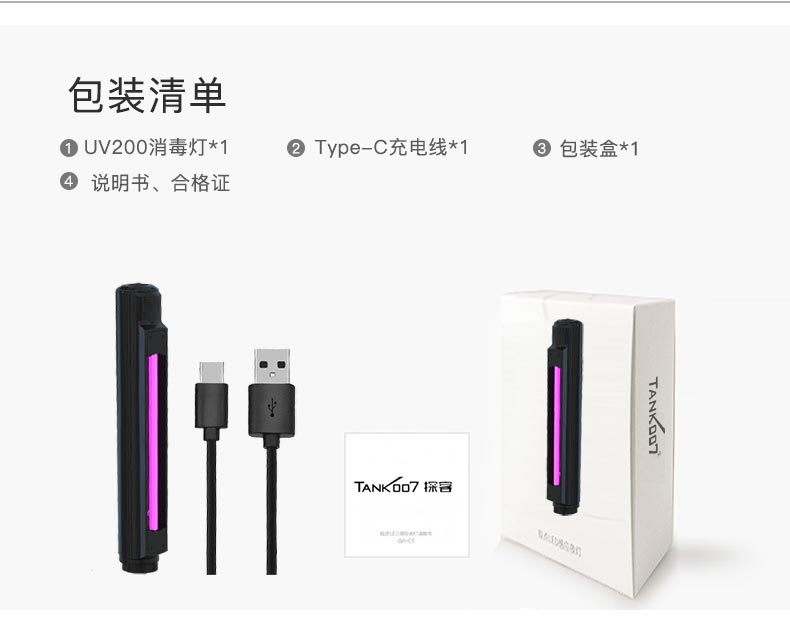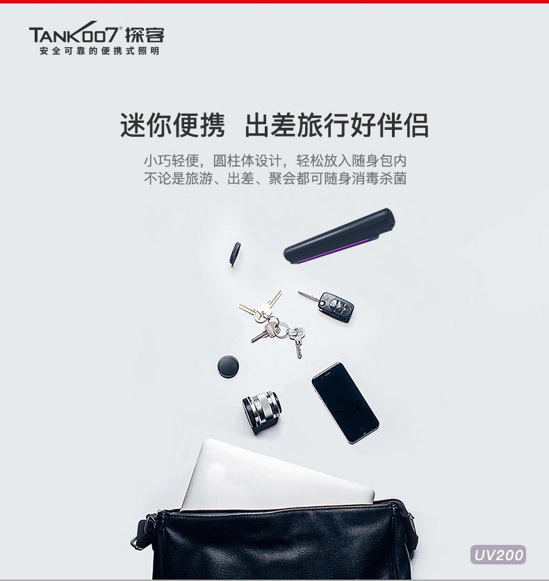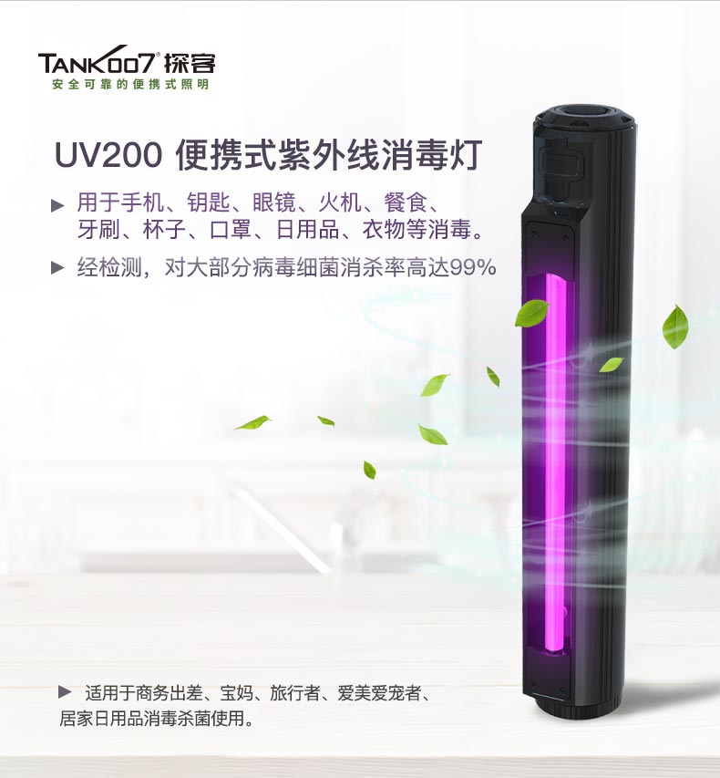 TANK007探客UV200紫外線消毒燈便攜式紫外消毒燈:是一款便攜式紫外消毒燈,針對各類病毒細(xì)菌、殺滅率達(dá)99%,UVC石英燈管,254nm波長有效殺菌,360°無死角循環(huán)消殺。可用于手機(jī)、鑰匙、眼...