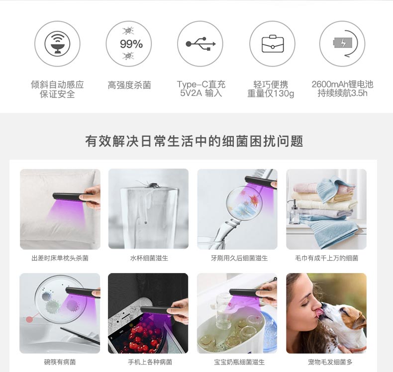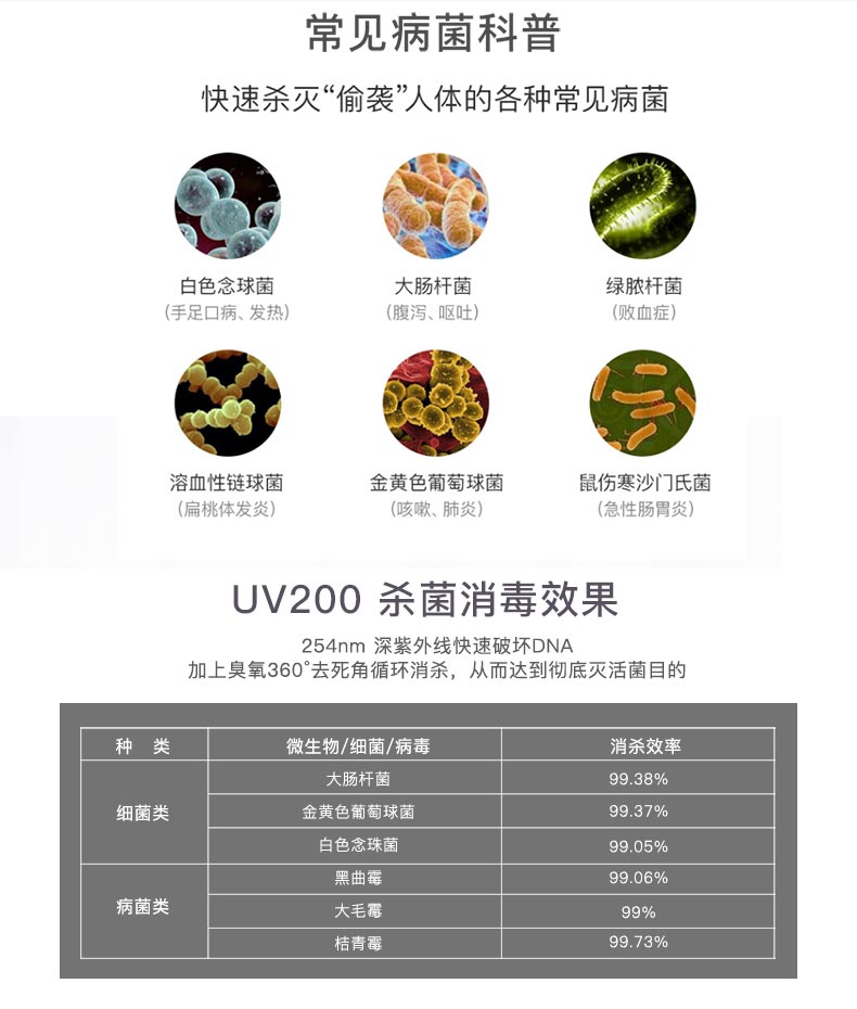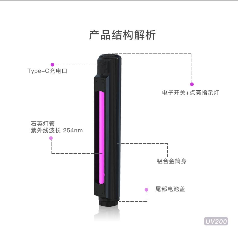 1.UV200是一款便攜式紫外消毒燈,針對各類病毒細(xì)菌、殺滅率達(dá)99%